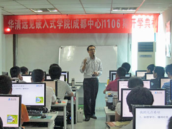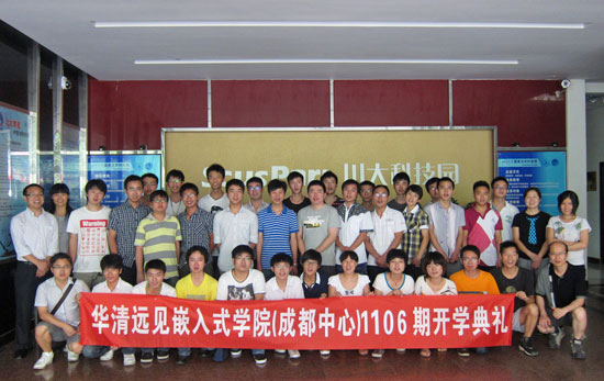 隨著C語言基礎(chu)補習考試的(de)(de)(de)(de)預熱,帶著大家滿滿的(de)(de)(de)(de)期(qi)待。華清遠見教育科技集團成(cheng)都(dou)中心1106期(qi)LINUX嵌入式(shi)軟件開發工程師(shi)就(jiu)業(ye)(ye)班(ban)開學典(dian)禮于(yu)2011月7月25日在成(cheng)都(dou)分中心嵌入式(shi)實驗室三拉開帷(wei)(wei)幕(mu)。上午9點,開學典(dian)禮在大家的(de)(de)(de)(de)熱烈掌聲(sheng)中拉開帷(wei)(wei)幕(mu)。出席本次開學典(dian)禮的(de)(de)(de)(de)有:成(cheng)都(dou)中心負責人;陶老(lao)(lao)(lao)師(shi),授(shou)課老(lao)(lao)(lao)師(shi):王老(lao)(lao)(lao)師(shi)、潘老(lao)(lao)(lao)師(shi)、徐老(lao)(lao)(lao)師(shi),以及(ji)課程咨詢、班(ban)主(zhu)任(ren)、教務和就(jiu)業(ye)(ye)等(deng)各部門諸位老(lao)(lao)(lao)師(shi)。本次開學典(dian)禮由(you)班(ban)主(zhu)任(ren)周老(lao)(lao)(lao)師(shi)主(zhu)持。
