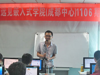 本次典禮,特邀請了成都中心多位好評如潮的資深老師,給大家分享學習經驗和方法、課程體系介紹、嵌入式開發中實用要點分享,以及對嵌(qian)(qian)入(ru)式(shi)(shi)現狀的(de)(de)(de)解(jie)析和(he)華清(qing)遠見學(xue)(xue)院歷史(shi)的(de)(de)(de)介紹(shao)。首先,在(zai)一片掌聲中,成都分中心負(fu)責人陶老師致辭。陶老師希(xi)望(wang)大家(jia)做(zuo)到三點;吃苦+堅(jian)持+正確學(xue)(xue)習方(fang)法。希(xi)望(wang)還(huan)是在(zai)校學(xue)(xue)生(sheng)的(de)(de)(de)學(xue)(xue)員(yuan)摘掉學(xue)(xue)生(sheng)的(de)(de)(de)帽子,以一個準工程師來嚴格要(yao)求(qiu)自己,通過這四個多月的(de)(de)(de)學(xue)(xue)習,能夠排除萬(wan)難,交(jiao)出完美的(de)(de)(de)答卷。然后對嵌(qian)(qian)入(ru)式(shi)(shi)行(xing)業(ye)(ye)(ye)現狀及西南地(di)區嵌(qian)(qian)入(ru)式(shi)(shi)產(chan)業(ye)(ye)(ye)的(de)(de)(de)發(fa)展情況做(zuo)了(le)詳(xiang)細解(jie)析。陶老師講到:溫總理在(zai)二會上對嵌(qian)(qian)入(ru)式(shi)(shi)行(xing)業(ye)(ye)(ye)詳(xiang)細方(fang)案的(de)(de)(de)提(ti)出,的(de)(de)(de)重視,讓嵌(qian)(qian)入(ru)式(shi)(shi)行(xing)業(ye)(ye)(ye)發(fa)展迅(xun)猛,人才(cai)需求(qiu)量激增,特別是提(ti)高我們(men)物質(zhi)生(sheng)活水平的(de)(de)(de)消費類電子產(chan)品(pin)嵌(qian)(qian)入(ru)式(shi)(shi)相關開(kai)發(fa),求(qiu)才(cai)如渴。讓大家(jia)要(yao)有這樣的(de)(de)(de)使命感,為發(fa)展中的(de)(de)(de)嵌(qian)(qian)入(ru)式(shi)(shi)行(xing)業(ye)(ye)(ye)做(zuo)出自己的(de)(de)(de)貢(gong)獻。緊接著(zhu)給大家(jia)介紹(shao)了(le)華清(qing)遠見教育科技集團(tuan)的(de)(de)(de)歷史(shi)。使得1106期的(de)(de)(de)學(xue)(xue)員(yuan)們(men)的(de)(de)(de)使命感被積極帶動起來,讓大家(jia)更加(jia)堅(jian)定了(le)方(fang)向(xiang),朝(chao)著(zhu)目標努力(li)向(xiang)前!
