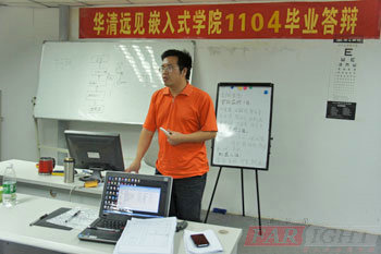 在曹老(lao)師向(xiang)學(xue)員說明答辯注意事項,以及宣布(bu)答辯順序(xu)后,整(zheng)個(ge)答辯緊張而有序(xu)地正式(shi)開始(shi)了。由第(di)一個(ge)項目組(zu)(zu)《家庭安防實時監控系統》的組(zu)(zu)長葉(xie)宜(yi)霖(lin)第(di)一個(ge)上臺展(zhan)示他(ta)的畢(bi)業(ye)成(cheng)(cheng)果,首先他(ta)帶著自信的微笑(xiao)介紹了他(ta)們組(zu)(zu)的成(cheng)(cheng)員以及整(zheng)個(ge)項目功(gong)能與原理,接(jie)著詳(xiang)細地介紹了他(ta)所研究的項目模(mo)塊(kuai),在大家的掌(zhang)聲當中結束了他(ta)的精(jing)彩展(zhan)示。接(jie)著,幾個(ge)評委老(lao)師有針(zhen)對(dui)性地對(dui)該(gai)項目提(ti)了幾個(ge)問(wen)題,葉(xie)宜(yi)霖(lin)都做出了令老(lao)師與同學(xue)滿意的回答,贏得了同學(xue)們熱烈的掌(zhang)聲,也給今天(tian)的答辯打(da)了個(ge)開門(men)紅(hong)。