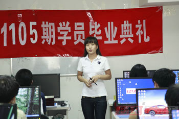 | 圖三、班主任老師主持1105期畢業典禮 | 圖四、就業指導老師裴老師介紹面試注意事項 |