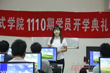 金風送(song)爽(shuang),丹桂飄香,時值九月(yue)(yue)金秋,華(hua)(hua)清遠(yuan)見(jian)(jian)(jian)教育科技(ji)集(ji)團(tuan)迎來(lai)了1110期的(de)新學員。開(kai)(kai)學典(dian)禮(li)(li)于2011年(nian)9月(yue)(yue)5日上午9:00開(kai)(kai)學典(dian)禮(li)(li)在大家(jia)熱烈的(de)掌聲中拉開(kai)(kai)帷幕。參加開(kai)(kai)學典(dian)禮(li)(li)的(de)嘉賓包(bao)括華(hua)(hua)清遠(yuan)見(jian)(jian)(jian)教育科技(ji)集(ji)團(tuan)院長(chang)季老師(shi)、華(hua)(hua)清遠(yuan)見(jian)(jian)(jian)教育科技(ji)集(ji)團(tuan)副院長(chang)賈(jia)老師(shi)、學術部總監劉老師(shi),品(pin)質(zhi)保障部總監關老師(shi)、就業主管裴老師(shi),他(ta)們的(de)到來(lai)迎來(lai)了學員們的(de)陣(zhen)陣(zhen)掌聲。