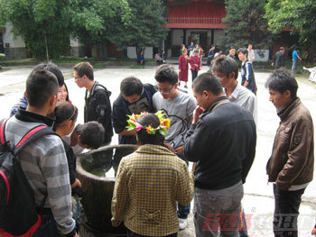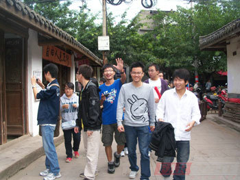 在華清(qing)遠見(jian)成(cheng)都中心1106期(qi)學(xue)(xue)員每(mei)日充(chong)實學(xue)(xue)習的(de)(de)縫(feng)隙里難得擠出一(yi)個輕(qing)松愜意的(de)(de)清(qing)晨,和煦微風輕(qing)撫面頰;鳥兒歡快(kuai)(kuai)嬉笑。2011年9月(yue)24日這天我們踏上了征途,準備暫時離開喧囂快(kuai)(kuai)節奏(zou)的(de)(de)都市(shi),去洛帶(dai)古(gu)鎮享(xiang)受“桃源”仙境。坐上開往洛帶(dai)的(de)(de)客(ke)車,緩(huan)緩(huan)投(tou)入大自然地懷抱。一(yi)路映(ying)入眼簾的(de)(de)都是大片大片的(de)(de)綠色(se),大家(jia)一(yi)邊享(xiang)受著那份清(qing)幽,一(yi)邊各(ge)種討論,很多同學(xue)(xue)被(bei)這美(mei)麗的(de)(de)風景吸引(yin),有的(de)(de)同學(xue)(xue)忍不(bu)住說(shuo):“畢(bi)業了就在這里安(an)家(jia)啦(la)!”。