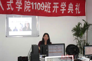 | 圖三、上海中心就業閆老師談就業 | 圖四、上海中心班主任講教學管理 |
