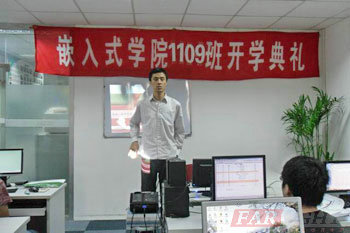 上午9點(dian)開學典禮準時在(zai)(zai)銀海(hai)大樓第一(yi)教室(shi)隆重(zhong)舉行。班(ban)主任胡老(lao)(lao)師(shi)(shi)(shi)首先(xian)給學員(yuan)們(men)播(bo)放(fang)了一(yi)段短(duan)片(pian)關(guan)于華(hua)(hua)清(qing)(qing)遠見(jian)的(de)(de)(de)(de)(de)未來發(fa)展前景的(de)(de)(de)(de)(de)簡介,這(zhe)吸引了眾多(duo)(duo)學員(yuan)的(de)(de)(de)(de)(de)眼(yan)球,這(zhe)也讓(rang)學員(yuan)們(men)更加清(qing)(qing)晰地認識到(dao)嵌(qian)入式(shi)行業(ye)(ye)的(de)(de)(de)(de)(de)廣闊(kuo)前景和職業(ye)(ye)發(fa)展的(de)(de)(de)(de)(de)美好前途(tu)。接著在(zai)(zai)胡老(lao)(lao)師(shi)(shi)(shi)的(de)(de)(de)(de)(de)主持下,開學典禮正式(shi)開始。在(zai)(zai)各位師(shi)(shi)(shi)生熱烈的(de)(de)(de)(de)(de)掌聲中(zhong),典禮首先(xian)邀請了上海(hai)中(zhong)心負責人(ren)高(gao)老(lao)(lao)師(shi)(shi)(shi)致辭。高(gao)老(lao)(lao)師(shi)(shi)(shi)給學員(yuan)們(men)講解了華(hua)(hua)清(qing)(qing)遠見(jian)的(de)(de)(de)(de)(de)發(fa)展歷史及背景、華(hua)(hua)清(qing)(qing)遠見(jian)的(de)(de)(de)(de)(de)業(ye)(ye)務模式(shi)、嵌(qian)人(ren)式(shi)學院的(de)(de)(de)(de)(de)發(fa)展歷程(cheng)、課程(cheng)體(ti)系、師(shi)(shi)(shi)資介紹等(deng)等(deng),同時高(gao)老(lao)(lao)師(shi)(shi)(shi)對學員(yuan)們(men)這(zhe)四個月的(de)(de)(de)(de)(de)學習提出了具(ju)體(ti)的(de)(de)(de)(de)(de)要(yao)求(qiu),希望(wang)大家(jia)能(neng)(neng)夠在(zai)(zai)接下來的(de)(de)(de)(de)(de)學習中(zhong)堅持、努(nu)力、終獲得成功,高(gao)老(lao)(lao)師(shi)(shi)(shi)也提到(dao)在(zai)(zai)整個學習過程(cheng)中(zhong)可能(neng)(neng)會(hui)(hui)碰到(dao)很多(duo)(duo)問題(ti),很多(duo)(duo)學員(yuan)學到(dao)后會(hui)(hui)有想放(fang)棄的(de)(de)(de)(de)(de)感覺(jue)尤其學到(dao)ARM這(zhe)一(yi)模塊,很多(duo)(duo)人(ren)會(hui)(hui)覺(jue)得很難,但你(ni)只(zhi)要(yao)堅持相信(xin)到(dao)后你(ni)定能(neng)(neng)看到(dao)希望(wang)。