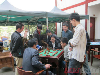 2011年10月16日是一個艷陽(yang)天。“各路人(ren)馬”分別齊聚約定(ding)地(di)點。清(qing)點完人(ren)數后我(wo)(wo)們出(chu)發了(le)。不(bu)到(dao)(dao)30分鐘(zhong)就(jiu)到(dao)(dao)了(le)幸福梅(mei)林站。知道我(wo)(wo)們到(dao)(dao)站的(de)消(xiao)息,水云間(jian)的(de)農家樂拿(na)了(le)一個大(da)(da)(da)大(da)(da)(da)的(de)牌子過(guo)來(lai)迎接,讓我(wo)(wo)們感(gan)(gan)覺(jue)小(xiao)小(xiao)風光,大(da)(da)(da)家邁開(kai)大(da)(da)(da)步來(lai)到(dao)(dao)水云間(jian)。由于先前(qian)就(jiu)發過(guo)照片到(dao)(dao)群里,大(da)(da)(da)家都感(gan)(gan)覺(jue)像走在圖畫里,如夢如幻般(ban)。然后我(wo)(wo)們就(jiu)開(kai)始了(le)各種娛樂活動。右邊羽(yu)毛(mao)球(qiu)雙(shuang)打激烈,左(zuo)邊四(si)川麻將血戰到(dao)(dao)底(di)打的(de)悠閑自得,中間(jian)下象棋的(de)同學(xue)腦力運動拼殺中。打羽(yu)毛(mao)球(qiu)的(de)人(ren)員打著打著開(kai)始嫌(xian)棄場地(di)沒有辦(ban)法把他們的(de)功(gong)力發揮的(de)淋漓盡(jin)致,于是決定(ding)換場地(di)到(dao)(dao)不(bu)遠處的(de)幸福梅(mei)林游客中心(xin)去(qu)施(shi)展(zhan)功(gong)夫。當通知他們回來(lai)聚餐時(shi)都還(huan)意猶未盡(jin)。