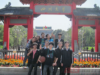 | 圖七、球場合影:換個角度! | 圖八、川大合影:真喜慶 |