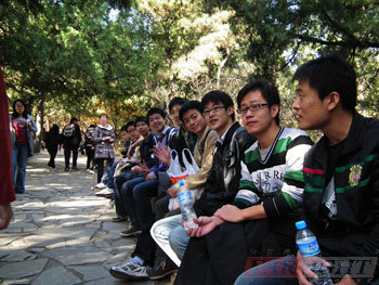 上午(wu)9時,大家(jia)相約在香山東(dong)門(men)(men)的售票處集合。或許是(shi)(shi)因為(wei)天氣格(ge)外晴朗(lang)的原因,似(si)乎(hu)感覺北京全(quan)市(shi)的人們都行(xing)動起(qi)來去看紅葉了。人真是(shi)(shi)格(ge)外得(de)多,車當然(ran)更是(shi)(shi)出(chu)奇的堵,許多同學(xue)都是(shi)(shi)從早上7點出(chu)門(men)(men)才(cai)到(dao)達(da)香山,甚至有(you)同學(xue)是(shi)(shi)從很遠(yuan)的地方(fang)就開始(shi)下車步行(xing),才(cai)得(de)以達(da)到(dao)香山東(dong)門(men)(men)處。