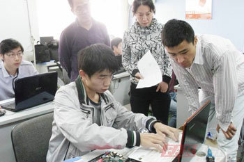 本次畢(bi)業(ye)答(da)(da)辯(bian)(bian)由(you)班主(zhu)任胡(hu)老師主(zhu)持,首先胡(hu)老師對(dui)本次答(da)(da)辯(bian)(bian)的(de)(de)(de)順序及答(da)(da)辯(bian)(bian)注意事項(xiang)做(zuo)(zuo)(zuo)了簡要的(de)(de)(de)說(shuo)明(ming),也(ye)衷心祝愿每(mei)(mei)位(wei)學(xue)員(yuan)能(neng)展(zhan)示(shi)(shi)個(ge)(ge)人(ren)(ren)的(de)(de)(de)才華,為自(zi)己(ji)這(zhe)(zhe)四個(ge)(ge)多(duo)月的(de)(de)(de)學(xue)習(xi)畫(hua)上(shang)圓滿的(de)(de)(de)句號。由(you)于人(ren)(ren)數比(bi)(bi)(bi)較多(duo)時(shi)間(jian)也(ye)比(bi)(bi)(bi)較緊,因此胡(hu)老師把時(shi)間(jian)留給了大(da)(da)家,以(yi)前(qian)是(shi)(shi)老師在講臺上(shang)講,你(ni)們(men)(men)聽(ting),今天做(zuo)(zuo)(zuo)角色轉(zhuan)變,老師聽(ting),你(ni)們(men)(men)講。第一(yi)組(zu)出(chu)場的(de)(de)(de)是(shi)(shi)胡(hu)雄組(zu),該組(zu)長熟練(lian)而(er)詳(xiang)細的(de)(de)(de)介(jie)紹組(zu)里的(de)(de)(de)項(xiang)目(mu)(mu)(mu)(mu)內(nei)容,讓在座(zuo)的(de)(de)(de)老師和(he)同學(xue)眼前(qian)一(yi)亮(liang)。雖(sui)然在講的(de)(de)(de)過程中(zhong)(zhong)沒有(you)(you)控制好時(shi)間(jian),但每(mei)(mei)個(ge)(ge)知(zhi)(zhi)識點(dian)都講得非常到位(wei),這(zhe)(zhe)不得不贏得臺下同學(xue)和(he)老師的(de)(de)(de)陣(zhen)陣(zhen)掌聲。后(hou)臺下的(de)(de)(de)講師問(wen)(wen)了一(yi)個(ge)(ge)比(bi)(bi)(bi)較經(jing)典(dian)而(er)普(pu)遍的(de)(de)(de)問(wen)(wen)題(ti)就是(shi)(shi),在做(zuo)(zuo)(zuo)實驗(yan)過程中(zhong)(zhong)你(ni)遇到哪些問(wen)(wen)題(ti),大(da)(da)的(de)(de)(de)問(wen)(wen)題(ti)是(shi)(shi)什么(me),每(mei)(mei)次遇到問(wen)(wen)題(ti)時(shi)你(ni)是(shi)(shi)如何解決的(de)(de)(de),看似簡單而(er)普(pu)通的(de)(de)(de)問(wen)(wen)題(ti),這(zhe)(zhe)其(qi)實也(ye)是(shi)(shi)學(xue)員(yuan)內(nei)心大(da)(da)的(de)(de)(de)問(wen)(wen)題(ti)。每(mei)(mei)次遇到問(wen)(wen)題(ti)都向自(zi)己(ji)問(wen)(wen)個(ge)(ge)為什么(me),也(ye)許(xu)你(ni)會學(xue)得更加深入更加透徹。參(can)加畢(bi)業(ye)答(da)(da)辯(bian)(bian)的(de)(de)(de)學(xue)員(yuan)們(men)(men)有(you)(you)條不紊地按(an)次序進行(xing)項(xiang)目(mu)(mu)(mu)(mu)答(da)(da)辯(bian)(bian)。學(xue)員(yuan)們(men)(men)將(jiang)自(zi)己(ji)精心準(zhun)備(bei)的(de)(de)(de)畢(bi)業(ye)設計(ji)以(yi)PPT的(de)(de)(de)形式生動(dong)地展(zhan)示(shi)(shi)在各(ge)(ge)位(wei)老師面前(qian),對(dui)自(zi)己(ji)項(xiang)目(mu)(mu)(mu)(mu)中(zhong)(zhong)的(de)(de)(de)主(zhu)要觀點(dian)進行(xing)了詳(xiang)盡的(de)(de)(de)闡述(shu)。為了節約時(shi)間(jian)各(ge)(ge)小組(zu)按(an)次序答(da)(da)辯(bian)(bian)完后(hou),進行(xing)了統一(yi)的(de)(de)(de)項(xiang)目(mu)(mu)(mu)(mu)演(yan)示(shi)(shi)。令人(ren)(ren)高(gao)興(xing)的(de)(de)(de)是(shi)(shi),每(mei)(mei)一(yi)組(zu)項(xiang)目(mu)(mu)(mu)(mu)演(yan)示(shi)(shi)終(zhong)功能(neng)目(mu)(mu)(mu)(mu)的(de)(de)(de)都實現了,這(zhe)(zhe)也(ye)讓他們(men)(men)感覺非常有(you)(you)成就感。是(shi)(shi)呀!剛開始(shi)做(zuo)(zuo)(zuo)項(xiang)目(mu)(mu)(mu)(mu)的(de)(de)(de)時(shi)候都不知(zhi)(zhi)道怎么(me)開始(shi)著(zhu)手,有(you)(you)時(shi)候為了一(yi)個(ge)(ge)問(wen)(wen)題(ti)而(er)苦思(si)冥(ming)想(xiang)很久,到現在很多(duo)功能(neng)都實現了,這(zhe)(zhe)不能(neng)不說(shuo)是(shi)(shi)質的(de)(de)(de)飛(fei)躍。