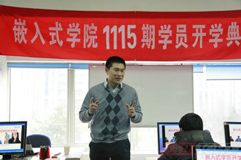 在班(ban)主任老師(shi)(shi)做(zuo)了(le)簡短的(de)(de)(de)自(zi)我介紹(shao)后(hou), 首先大(da)家以熱(re)烈的(de)(de)(de)掌(zhang)聲歡迎(ying)華(hua)清遠(yuan)見(jian)教育科(ke)(ke)技集團院長季老師(shi)(shi)為開學(xue)(xue)典(dian)禮致(zhi)辭(ci),季老師(shi)(shi)對華(hua)清遠(yuan)見(jian)教育科(ke)(ke)技集團的(de)(de)(de)文化、發(fa)展(zhan)歷(li)程及授權合作單(dan)位進行(xing)了(le)簡短的(de)(de)(de)介紹(shao),并(bing)(bing)對當前普遍關注的(de)(de)(de)熱(re)點“物聯(lian)網”、“云計算”、“電子書”、“移(yi)動(dong)通訊設備”等進行(xing)了(le)逐一(yi)的(de)(de)(de)分析,并(bing)(bing)舉例(li)對“智能(neng)房屋”、“智能(neng)交通”等讓大(da)家能(neng)夠充(chong)分感受到(dao)嵌入(ru)式(shi)行(xing)業的(de)(de)(de)優(you)勢和(he)迅猛發(fa)展(zhan)的(de)(de)(de)現狀。同(tong)時季老師(shi)(shi)也鼓勵1115期的(de)(de)(de)學(xue)(xue)員要(yao)努(nu)力學(xue)(xue)習,充(chong)分調(diao)動(dong)起自(zi)己的(de)(de)(de)興趣和(he)學(xue)(xue)習積極性,在華(hua)清遠(yuan)見(jian)各位老師(shi)(shi)的(de)(de)(de)幫助下,真(zhen)正達到(dao)學(xue)(xue)有(you)所成(cheng),終成(cheng)為一(yi)名合格的(de)(de)(de)嵌入(ru)式(shi)工程師(shi)(shi)。后(hou)季老師(shi)(shi)也給每位同(tong)學(xue)(xue)提出了(le)幾點希望,希望同(tong)學(xue)(xue)們能(neng)夠迅速找到(dao)適合自(zi)己的(de)(de)(de)學(xue)(xue)習方(fang)法(fa),真(zhen)正做(zuo)到(dao)有(you)質有(you)量的(de)(de)(de)學(xue)(xue)習。