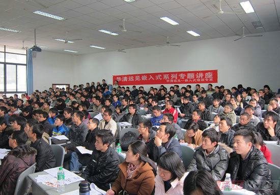 2011年12月10日,由華清(qing)遠(yuan)見成(cheng)都中(zhong)心主辦,電子科技(ji)大學(xue)研究生院電子科技(ji)技(ji)術(shu)研究院協辦的(de)(de)(de)(de)“Linux內核及驅(qu)動(dong)開(kai)發技(ji)術(shu)”專題(ti)講(jiang)座(zuo)(zuo)在電子科技(ji)大學(xue)教(jiao)學(xue)樓C208成(cheng)功(gong)舉行。本次講(jiang)座(zuo)(zuo)由華清(qing)遠(yuan)見成(cheng)都中(zhong)心三位高級(ji)講(jiang)師擔任(ren)主講(jiang)人,針對(dui)linux內核及驅(qu)動(dong)開(kai)發中(zhong)具代表性的(de)(de)(de)(de)三個專題(ti)與(yu)(yu)參(can)(can)與(yu)(yu)者分享(xiang)與(yu)(yu)交流。活動(dong)當天吸(xi)引了(le)200多名嵌(qian)入式愛好者們的(de)(de)(de)(de)積(ji)極參(can)(can)與(yu)(yu),參(can)(can)加講(jiang)座(zuo)(zuo)的(de)(de)(de)(de)朋友大多是(shi)來自企業的(de)(de)(de)(de)工程師、在校的(de)(de)(de)(de)大學(xue)生、以及高校相關專業的(de)(de)(de)(de)教(jiao)師,全場座(zuo)(zuo)無虛席,大家(jia)認真(zhen)聆(ling)聽華清(qing)遠(yuan)見技(ji)術(shu)專家(jia)的(de)(de)(de)(de)經驗分享(xiang),與(yu)(yu)華清(qing)遠(yuan)見的(de)(de)(de)(de)資(zi)深講(jiang)師一(yi)起共(gong)同探討嵌(qian)入式的(de)(de)(de)(de)行業發展動(dong)態和(he)新(xin)技(ji)術(shu)。