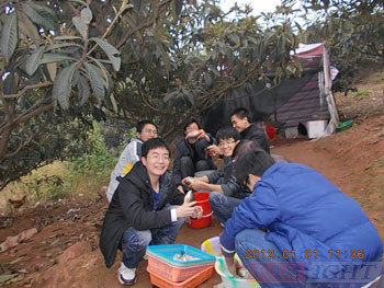 2012年(nian)1月1日(ri),大(da)家都早早的(de)(de)如(ru)約來(lai)(lai)到車(che)站,分為兩批人馬分別趕車(che)到了龍泉汽車(che)總(zong)站匯(hui)合。然后全體學員(yuan)一(yi)起坐上(shang)趕往百工(gong)堰的(de)(de)車(che)子(zi)。全車(che)幾乎都是我(wo)們華清遠見的(de)(de)學員(yuan),伴隨著大(da)家一(yi)路上(shang)的(de)(de)歡呼雀躍(yue),不知不覺中就來(lai)(lai)到了目的(de)(de)地。半邊山(shan)的(de)(de)老板真是熱情,我(wo)們剛剛下車(che),就看見他騎了個電(dian)瓶車(che)來(lai)(lai)為我(wo)們載食(shi)材。