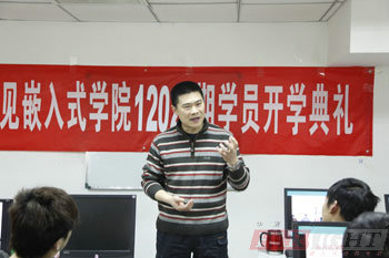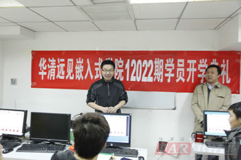 接(jie)著(zhu)(zhu)大家(jia)以(yi)熱烈的(de)(de)掌(zhang)聲歡迎華(hua)清(qing)遠見(jian)教(jiao)育科(ke)技集團院長季老(lao)(lao)(lao)師(shi)(shi)(shi)為(wei)開學(xue)典禮致辭,季老(lao)(lao)(lao)師(shi)(shi)(shi)以(yi)當期普遍關(guan)注(zhu)的(de)(de) “物(wu)聯網”、“云計算”、“電子書”、“移動(dong)通(tong)訊(xun)設備”等(deng)熱點(dian)問題(ti)為(wei)切入點(dian)對(dui)嵌入式(shi)行(xing)業進行(xing)了深(shen)入淺出的(de)(de)分析(xi),并列舉了生動(dong)的(de)(de)實例讓大家(jia)能(neng)夠充分感受到嵌入式(shi)行(xing)業未來發展的(de)(de)美好前景和迅猛勢(shi)頭。緊接(jie)著(zhu)(zhu)季老(lao)(lao)(lao)師(shi)(shi)(shi)對(dui)華(hua)清(qing)遠見(jian)教(jiao)育科(ke)技集團的(de)(de)文化、發展歷(li)程及授權合(he)作單位(wei)進行(xing)了簡短的(de)(de)介紹, 后鼓(gu)勵全體學(xue)員充分利用在華(hua)清(qing)遠見(jian)學(xue)習的(de)(de)時間,在華(hua)清(qing)遠見(jian)各位(wei)老(lao)(lao)(lao)師(shi)(shi)(shi)的(de)(de)幫助下,真正達到學(xue)有所成(cheng),終成(cheng)為(wei)一(yi)名合(he)格(ge)的(de)(de)嵌入式(shi)工程師(shi)(shi)(shi)。