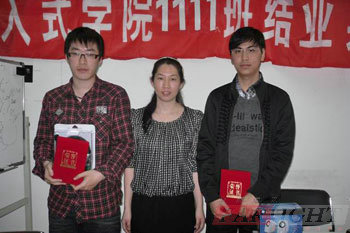 后高(gao)老(lao)師(shi)給優(you)(you)(you)秀學(xue)(xue)員和優(you)(you)(you)秀小組頒獎(jiang)。經過學(xue)(xue)校全體老(lao)師(shi)的(de)一致(zhi)考評(ping)、篩(shai)選,終忻子(zi)舒、薛博宇兩(liang)人以自己四個月(yue)中優(you)(you)(you)異的(de)技能學(xue)(xue)習(xi)和優(you)(you)(you)秀的(de)綜合素養贏得了諸位老(lao)師(shi)的(de)一致(zhi)認可(ke),被評(ping)為上海中心1111期(qi)優(you)(you)(you)秀學(xue)(xue)員。高(gao)老(lao)師(shi)親(qin)自為他們(men)頒發獎(jiang)品和證書,在掌聲和祝福聲中兩(liang)位學(xue)(xue)員接(jie)受了這(zhe)份(fen)榮譽。相信在不久的(de)將(jiang)來,只要他們(men)繼續保持這(zhe)種學(xue)(xue)習(xi)狀態和學(xue)(xue)習(xi)熱情,必定在企業中也(ye)能脫穎而出。