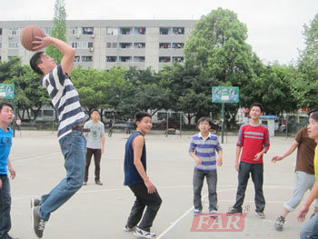原計(ji)劃上午9.40籃球(qiu)(qiu)賽(sai)(sai)正式開始,可是(shi)同(tong)學(xue)們(men)(men)都(dou)異常的興奮,9.35就(jiu)要求(qiu)比(bi)賽(sai)(sai)開始了(le)(le)(le)。隨著裁(cai)判的一(yi)聲(sheng)哨響,雙(shuang)方(fang)很快(kuai)就(jiu)進入比(bi)賽(sai)(sai)狀(zhuang)態了(le)(le)(le),你(ni)爭我搶(qiang)特(te)別熱鬧(nao),兩分球(qiu)(qiu)、三分球(qiu)(qiu)連續(xu)不(bu)(bu)斷,從那投球(qiu)(qiu)的姿勢不(bu)(bu)難(nan)看出他們(men)(men)平(ping)時還(huan)是(shi)有(you)練習(xi)的。第(di)一(yi)小節很輕松的打完了(le)(le)(le),兩組(zu)比(bi)分是(shi)16:8,雖然二組(zu)落后幾分,但是(shi)完全(quan)不(bu)(bu)影響他們(men)(men)打球(qiu)(qiu)的精(jing)神勁,畢(bi)竟我們(men)(men)的比(bi)賽(sai)(sai)是(shi)友(you)誼第(di)一(yi)嘛。在(zai)這空擋(dang),回頭看乒(ping)乓球(qiu)(qiu)臺處,1201期的班(ban)長竟然在(zai)那里玩(wan)起了(le)(le)(le)雙(shuang)節棍,他將雙(shuang)節棍玩(wan)的出神入化(hua)的,大(da)(da)家都(dou)看的目瞪口(kou)呆了(le)(le)(le)。這時旁邊有(you)同(tong)學(xue)接話了(le)(le)(le):“如(ru)果是(shi)我去(qu)玩(wan),肯定打的我鼻青臉腫(zhong)哦!”惹得(de)大(da)(da)家哄堂大(da)(da)笑。