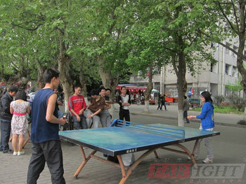 接著就(jiu)是的(de)乒乓球賽(sai)(sai)了(le),1201期班上唯一的(de)兩個(ge)女同學也(ye)參(can)與(yu)進來了(le),可(ke)別小瞧了(le)她們(men)哦,說不定(ding)她們(men)會打(da)入(ru)總(zong)決賽(sai)(sai)呢!比賽(sai)(sai)的(de)第一輪、第二輪采取了(le)抽(chou)簽(qian)對抗賽(sai)(sai),后(hou)的(de)贏家參(can)與(yu)到我們(men)的(de)半決賽(sai)(sai)循(xun)環對打(da),我們(men)班的(de)女生真的(de)很棒(bang),有(you)一個(ge)女生打(da)入(ru)了(le)半決賽(sai)(sai),打(da)贏了(le)一個(ge)又一個(ge)男孩子,但是他們(men)也(ye)輸的(de)心服(fu)口服(fu)。看看她發(fa)球的(de)姿勢都知道是個(ge)高手(shou),并(bing)且橫板、豎(shu)板都能(neng)靈(ling)活運用。
