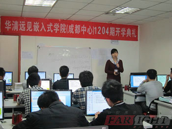 接(jie)著(zhu),大(da)家(jia)(jia)以(yi)熱烈的掌聲歡(huan)迎(ying)成(cheng)(cheng)都(dou)中(zhong)心校(xiao)長陶(tao)(tao)老(lao)(lao)(lao)師(shi)(shi)(shi)為(wei)(wei)開學(xue)典(dian)禮致辭。陶(tao)(tao)老(lao)(lao)(lao)師(shi)(shi)(shi)先分(fen)享(xiang)了自己(ji)從(cong)事職業教(jiao)育培(pei)訓方面的經驗,希望對同學(xue)們以(yi)后(hou)的學(xue)習(xi)和生活能(neng)有(you)所啟發和幫助,這里陶(tao)(tao)老(lao)(lao)(lao)師(shi)(shi)(shi)特別強調(diao)了在學(xue)習(xi)和生活中(zhong)堅持的重要性。然后(hou),陶(tao)(tao)老(lao)(lao)(lao)師(shi)(shi)(shi)介紹(shao)了嵌(qian)入(ru)式(shi)(shi)的發展(zhan)(zhan)現狀和前景(jing),并(bing)列舉了生動的實(shi)例讓大(da)家(jia)(jia)能(neng)夠(gou)充分(fen)感受到(dao)嵌(qian)入(ru)式(shi)(shi)行業未來發展(zhan)(zhan)前景(jing)和迅猛勢(shi)頭。接(jie)著(zhu),陶(tao)(tao)老(lao)(lao)(lao)師(shi)(shi)(shi)介紹(shao)了成(cheng)(cheng)都(dou)中(zhong)心關于教(jiao)學(xue)教(jiao)務中(zhong)的各(ge)個(ge)方面,后(hou),陶(tao)(tao)老(lao)(lao)(lao)師(shi)(shi)(shi)鼓勵全體學(xue)員充分(fen)利用在華(hua)清(qing)遠見學(xue)習(xi)的時(shi)間,在華(hua)清(qing)遠見各(ge)位老(lao)(lao)(lao)師(shi)(shi)(shi)的幫助下,真正(zheng)達到(dao)學(xue)有(you)所成(cheng)(cheng),終成(cheng)(cheng)為(wei)(wei)一(yi)名優秀的嵌(qian)入(ru)式(shi)(shi)工程師(shi)(shi)(shi)。