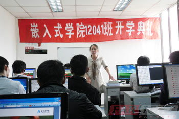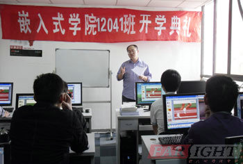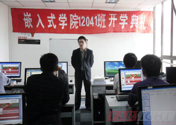 上午(wu)9點在班主任胡老(lao)師的(de)(de)(de)主持(chi)下開(kai)學(xue)(xue)典禮正式進行。首先胡老(lao)師做了一個(ge)簡單的(de)(de)(de)自我(wo)介(jie)紹(shao),將聯系方式公布給大(da)家(jia),以(yi)便同(tong)學(xue)(xue)們(men)(men)在未來的(de)(de)(de)四個(ge)月的(de)(de)(de)學(xue)(xue)習(xi)中能更好(hao)的(de)(de)(de)交流溝通,然后(hou)以(yi)熱烈的(de)(de)(de)掌聲歡(huan)迎上海中心(xin)校長(chang)高老(lao)師為(wei)(wei)典禮致辭。高老(lao)師首先對來自五湖四海的(de)(de)(de)學(xue)(xue)員們(men)(men)表(biao)示熱烈的(de)(de)(de)歡(huan)迎。接著(zhu)介(jie)紹(shao)了嵌(qian)(qian)入(ru)式的(de)(de)(de)發展現狀和(he)發展前景,并(bing)舉(ju)了很多(duo)生動的(de)(de)(de)例子讓大(da)家(jia)能夠充(chong)分(fen)的(de)(de)(de)感(gan)受到(dao)嵌(qian)(qian)入(ru)式這個(ge)行業(ye)在未來發展前景和(he)迅猛(meng)的(de)(de)(de)勢(shi)頭。接著(zhu)介(jie)紹(shao)了我(wo)們(men)(men)華清遠(yuan)見教育科(ke)技集團(tuan)成立的(de)(de)(de)背景以(yi)及華清遠(yuan)見教育科(ke)技集團(tuan)的(de)(de)(de)優勢(shi),強大(da)的(de)(de)(de)師資團(tuan)隊(dui)、實(shi)用系統的(de)(de)(de)課程(cheng)體系、權威的(de)(de)(de)認(ren)證體系、支持(chi)高校嵌(qian)(qian)入(ru)式學(xue)(xue)科(ke)的(de)(de)(de)建(jian)(jian)設、構建(jian)(jian)企業(ye)人才培訓標(biao)準和(he)全國范(fan)圍的(de)(de)(de)就業(ye)服(fu)務體系。后(hou)高老(lao)師也建(jian)(jian)議大(da)家(jia)在學(xue)(xue)習(xi)的(de)(de)(de)過程(cheng)中要(yao)找對方法有效(xiao)率的(de)(de)(de)學(xue)(xue)習(xi),充(chong)分(fen)利用在華清這四個(ge)月的(de)(de)(de)學(xue)(xue)習(xi),真正達到(dao)學(xue)(xue)有所成,成為(wei)(wei)一名(ming)優秀(xiu)的(de)(de)(de)嵌(qian)(qian)入(ru)式開(kai)發人才。