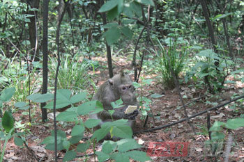 | 圖三、開飯了 | 圖四、搶食的小猴子 |