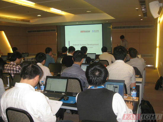 此次培訓(xun)的(de)(de)(de)(de)(de)內(nei)容(rong)豐(feng)富,主要(yao)涉及Android系(xi)統(tong)(tong)的(de)(de)(de)(de)(de)運(yun)行態分析、Android系(xi)統(tong)(tong)移(yi)植(zhi)、Android的(de)(de)(de)(de)(de)框架(jia)層(ceng)與(yu)(yu)HAL、Android的(de)(de)(de)(de)(de)圖形(xing)接(jie)口、Android的(de)(de)(de)(de)(de)功能(neng)接(jie)口、Android系(xi)統(tong)(tong)的(de)(de)(de)(de)(de)system層(ceng)、Android系(xi)統(tong)(tong)的(de)(de)(de)(de)(de)編譯系(xi)統(tong)(tong)、Android系(xi)統(tong)(tong)優化、網絡接(jie)口與(yu)(yu)云計算、OMA DM實現等(deng)方面的(de)(de)(de)(de)(de)內(nei)容(rong),吳老師深入淺出(chu)的(de)(de)(de)(de)(de)授課風格及專(zhuan)業的(de)(de)(de)(de)(de)課程(cheng)內(nei)容(rong)講解,使在場(chang)工程(cheng)師受益匪(fei)淺,好評連連。