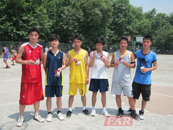 這次籃球(qiu)比賽共分(fen)(fen)為兩隊(dui),每隊(dui)各6名(ming)隊(dui)員(yuan)(yuan),其中,第一隊(dui)的(de)隊(dui)員(yuan)(yuan)里還包(bao)括(kuo)我們的(de)冉老師,裁判一名(ming),記分(fen)(fen)員(yuan)(yuan)一名(ming),其他學員(yuan)(yuan)和到場的(de)老師組成(cheng)(cheng)啦啦隊(dui)。比賽是半場制,每隊(dui)派4名(ming)隊(dui)員(yuan)(yuan)上場。在正式比賽開(kai)始前,兩隊(dui)的(de)隊(dui)長組織本隊(dui)成(cheng)(cheng)員(yuan)(yuan)開(kai)了(le)個小會,做了(le)戰略(lve)部署和人員(yuan)(yuan)安排(pai)。