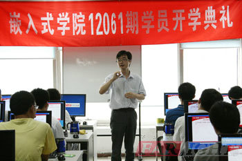 接著大家以熱烈(lie)的(de)(de)(de)(de)掌聲歡迎(ying)華(hua)清(qing)遠見教育科(ke)(ke)技(ji)集團(tuan)院長季(ji)老(lao)師(shi)(shi)為開(kai)學(xue)典禮致辭,季(ji)老(lao)師(shi)(shi)對華(hua)清(qing)遠見教育科(ke)(ke)技(ji)集團(tuan)的(de)(de)(de)(de)文化、發(fa)展歷(li)程(cheng)及授權合(he)作(zuo)單位進(jin)行了簡(jian)短的(de)(de)(de)(de)介(jie)紹,并(bing)(bing)對當前普遍關注的(de)(de)(de)(de)熱點(dian)“物聯網(wang)”、“云計算”、“電子(zi)書”、“移(yi)動(dong)通(tong)訊(xun)設(she)備”等(deng)進(jin)行了逐一(yi)的(de)(de)(de)(de)分析,并(bing)(bing)舉(ju)例對“智(zhi)(zhi)能房屋”、“智(zhi)(zhi)能交(jiao)通(tong)”等(deng)讓大家能夠充分感受到(dao)嵌(qian)入(ru)式行業的(de)(de)(de)(de)優勢和迅猛發(fa)展的(de)(de)(de)(de)現狀(zhuang)。同時(shi)季(ji)老(lao)師(shi)(shi)也鼓(gu)勵12061期的(de)(de)(de)(de)學(xue)員要努力學(xue)習,充分調動(dong)起自己的(de)(de)(de)(de)興趣和學(xue)習積極性(xing),在華(hua)清(qing)遠見各位老(lao)師(shi)(shi)的(de)(de)(de)(de)幫助下(xia),真正達到(dao)學(xue)有所成,終(zhong)成為一(yi)名合(he)格的(de)(de)(de)(de)嵌(qian)入(ru)式工程(cheng)師(shi)(shi)。后季(ji)老(lao)師(shi)(shi)也給每位同學(xue)提出了幾(ji)點(dian)希望(wang),希望(wang)同學(xue)們能夠迅速找到(dao)適合(he)自己的(de)(de)(de)(de)學(xue)習方法,真正做到(dao)有質有量的(de)(de)(de)(de)學(xue)習。
