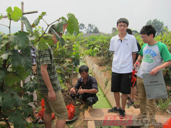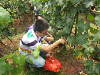 按(an)原(yuan)計劃1205期全體(ti)學(xue)員在華清(qing)(qing)遠見成(cheng)都中(zhong)心班主任張老(lao)師,就(jiu)業部黃老(lao)師和網絡部陳(chen)老(lao)師的(de)(de)(de)帶領下,早上8:30在成(cheng)都中(zhong)心所在的(de)(de)(de)嵌入式(shi)實驗室一集合,8:50從磨子(zi)橋(qiao)車(che)站出發。途中(zhong)換了(le)兩次車(che),11:20終于(yu)到目(mu)的(de)(de)(de)地:清(qing)(qing)河苑(yuan)。這是一座位于(yu)郊區(qu)的(de)(de)(de)農家樂,里面綠樹(shu)成(cheng)蔭(yin),荷(he)花盛(sheng)開,一派田園風光。八(ba)月的(de)(de)(de)太(tai)陽像(xiang)個火球一樣燃燒(shao)著(zhu),但一點(dian)兒也(ye)沒(mei)影響(xiang)大家摘(zhai)葡萄(tao)的(de)(de)(de)熱情。全體(ti)師生稍作休息后,就(jiu)在幾(ji)位老(lao)師的(de)(de)(de)帶領下來到了(le)附近的(de)(de)(de)葡萄(tao)園摘(zhai)葡萄(tao)。