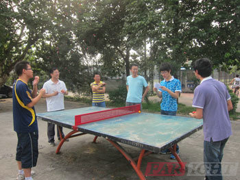 再(zai)看(kan)(kan)我(wo)們(men)(men)的(de)乒乓(pang)球(qiu)賽(sai)場(chang),選手(shou)(shou)們(men)(men)已(yi)經等不(bu)急(ji)了,開(kai)始(shi)進行淘(tao)(tao)汰(tai)賽(sai),兩名乒乓(pang)球(qiu)裁判正(zheng)認(ren)真負責的(de)進行計(ji)分。平常大家(jia)都忙于學習,難得有(you)(you)(you)時間(jian)和(he)(he)機會出來運動,心情都格外的(de)舒暢,打起球(qiu)來也(ye)是信心十足(zu),更有(you)(you)(you)一(yi)些乒乓(pang)球(qiu)高(gao)手(shou)(shou),深藏不(bu)露,甚至還(huan)有(you)(you)(you)級選手(shou)(shou),可憐我(wo)們(men)(men)某些業余的(de)學員好幾年都沒有(you)(you)(you)碰過乒乓(pang)球(qiu)拍,三局兩勝(sheng)的(de)比(bi)賽(sai),剛比(bi)了兩場(chang)就大比(bi)分遭遇淘(tao)(tao)汰(tai),本(ben)以為他(ta)(ta)會有(you)(you)(you)些失(shi)落(luo),卻看(kan)(kan)到他(ta)(ta)俏皮對正(zheng)在拍照(zhao)的(de)班主任張(zhang)老(lao)師做了個勝(sheng)利(li)的(de)手(shou)(shou)勢。呵(he)呵(he),和(he)(he)高(gao)手(shou)(shou)過招,雖敗猶榮,而(er)且我(wo)們(men)(men)是友誼(yi)第一(yi),比(bi)賽(sai)第二嘛。