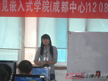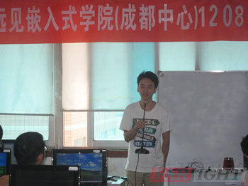 上午9時(shi),開(kai)學(xue)(xue)典禮正式(shi)開(kai)始。首先(xian),雷老(lao)(lao)師隆重的(de)(de)(de)介紹了參加(jia)開(kai)學(xue)(xue)典禮的(de)(de)(de)各位(wei)老(lao)(lao)師,接(jie)著(zhu),由(you)成(cheng)(cheng)都中(zhong)心陶(tao)(tao)校長為開(kai)學(xue)(xue)典禮致辭。陶(tao)(tao)老(lao)(lao)師首先(xian)對1208期所有學(xue)(xue)員表示熱烈的(de)(de)(de)歡迎(ying),然后結合(he)(he)自(zi)己多年在嵌入式(shi)行(xing)業的(de)(de)(de)工(gong)作經驗,從(cong)嵌入式(shi)行(xing)業的(de)(de)(de)現狀和前景兩個方(fang)面分(fen)析了嵌入式(shi)行(xing)業發展(zhan)的(de)(de)(de)良好趨勢,陶(tao)(tao)老(lao)(lao)師還介紹了華清遠見(jian)的(de)(de)(de)成(cheng)(cheng)立背景、優勢、以及成(cheng)(cheng)都中(zhong)心的(de)(de)(de)相關情況(kuang),后他給學(xue)(xue)員們提了幾點希(xi)望:希(xi)望學(xue)(xue)員們不怕苦(ku),不怕累,盡(jin)快早點適合(he)(he)自(zi)己的(de)(de)(de)學(xue)(xue)習(xi)方(fang)法(fa),在華清遠見(jian)各位(wei)老(lao)(lao)師的(de)(de)(de)幫助下,經過四個月的(de)(de)(de)學(xue)(xue)習(xi)終成(cheng)(cheng)為一名合(he)(he)格(ge)的(de)(de)(de)嵌入式(shi)工(gong)程師。