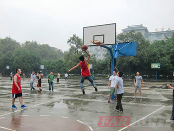 看(kan),我們(men)的(de)(de)(de)(de)學員們(men)已經等不及了,一(yi)(yi)(yi)個(ge)個(ge)躍躍欲試,在場(chang)上練了起(qi)來。雖然天空飄著小雨,地面還有點(dian)滑,但大家(jia)的(de)(de)(de)(de)激情(qing)不減(jian),斗志十足。籃(lan)(lan)球賽(sai)淘汰(tai)賽(sai),第(di)(di)(di)一(yi)(yi)(yi)組中,梁家(jia)強帶領(ling)第(di)(di)(di)一(yi)(yi)(yi)隊(dui)(dui)大比分淘汰(tai)了王(wang)魚波帶領(ling)的(de)(de)(de)(de)第(di)(di)(di)二隊(dui)(dui),而第(di)(di)(di)三(san)隊(dui)(dui)和第(di)(di)(di)四(si)(si)隊(dui)(dui)的(de)(de)(de)(de)淘汰(tai)賽(sai)打(da)的(de)(de)(de)(de)非常辛苦,后羅宏坤帶領(ling)的(de)(de)(de)(de)第(di)(di)(di)三(san)隊(dui)(dui)僅以兩分的(de)(de)(de)(de)優勢險勝王(wang)亞蘭帶領(ling)的(de)(de)(de)(de)第(di)(di)(di)四(si)(si)隊(dui)(dui)。一(yi)(yi)(yi)些學員利用中場(chang)休息(xi)時間開始了表(biao)演賽(sai)。投三(san)分的(de)(de)(de)(de),扣籃(lan)(lan)的(de)(de)(de)(de),三(san)步上籃(lan)(lan)的(de)(de)(de)(de),各個(ge)英姿颯爽(shuang),精神抖(dou)擻,就(jiu)連我們(men)的(de)(de)(de)(de)女(nv)裁判也忍不住表(biao)演了三(san)步上籃(lan)(lan),贏得了周圍一(yi)(yi)(yi)片(pian)喝(he)彩聲。隊(dui)(dui)員們(men)稍作(zuo)休息(xi)之后,將進入籃(lan)(lan)球決賽(sai)。