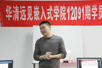 接著大家以熱烈的(de)(de)(de)掌(zhang)聲歡迎華(hua)清遠(yuan)(yuan)見教育科(ke)技集(ji)團院長季老師(shi)(shi)(shi)為(wei)開(kai)學(xue)(xue)典禮(li)致辭,季老師(shi)(shi)(shi)對(dui)華(hua)清遠(yuan)(yuan)見教育科(ke)技集(ji)團的(de)(de)(de)文化、發(fa)展歷程及授權合作(zuo)單(dan)位(wei)進行了簡短的(de)(de)(de)介紹,并(bing)對(dui)當前普遍關注的(de)(de)(de)熱點“物聯(lian)網”、“云計算”、“電子書(shu)”、“移動通訊設備”等進行了逐一的(de)(de)(de)分(fen)析(xi),并(bing)舉例(li)對(dui)“智能(neng)房屋”、“智能(neng)交通”等讓大家能(neng)夠(gou)充分(fen)感受到(dao)(dao)嵌入(ru)(ru)式(shi)行業的(de)(de)(de)優(you)勢和(he)迅猛(meng)發(fa)展的(de)(de)(de)現狀。同(tong)時季老師(shi)(shi)(shi)也鼓(gu)勵12021期的(de)(de)(de)學(xue)(xue)員要努力(li)學(xue)(xue)習,充分(fen)調(diao)動起自己的(de)(de)(de)興趣和(he)學(xue)(xue)習積極性(xing),在(zai)華(hua)清遠(yuan)(yuan)見各位(wei)老師(shi)(shi)(shi)的(de)(de)(de)幫助下,真(zhen)正達到(dao)(dao)學(xue)(xue)有(you)所成(cheng),終成(cheng)為(wei)一名(ming)合格的(de)(de)(de)嵌入(ru)(ru)式(shi)工程師(shi)(shi)(shi)。后季老師(shi)(shi)(shi)也給每位(wei)同(tong)學(xue)(xue)提出了幾(ji)點希望(wang),希望(wang)同(tong)學(xue)(xue)們(men)能(neng)夠(gou)迅速(su)找到(dao)(dao)適合自己的(de)(de)(de)學(xue)(xue)習方法,真(zhen)正做到(dao)(dao)有(you)質有(you)量的(de)(de)(de)學(xue)(xue)習。