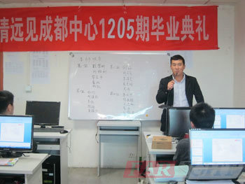 | 圖五、成都中心教學(xue)部潘老師總結(jie) | 圖六、成都(dou)中心老師與1205期優(you)秀學員合影 |