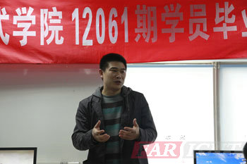 結業(ye)典禮首先由(you)華(hua)清遠(yuan)見教育(yu)科技(ji)集(ji)(ji)團院(yuan)長季老(lao)師致辭(ci),季老(lao)師首先對12061期學(xue)(xue)(xue)員(yuan)(yuan)為期四個月的學(xue)(xue)(xue)習做出肯定,并要(yao)求學(xue)(xue)(xue)員(yuan)(yuan)系統總結和回顧了(le)學(xue)(xue)(xue)員(yuan)(yuan)們四個月的學(xue)(xue)(xue)習過程及取得(de)的學(xue)(xue)(xue)習成果,同(tong)時季老(lao)師還鼓勵學(xue)(xue)(xue)員(yuan)(yuan)們對自己要(yao)充滿信心,要(yao)不斷的學(xue)(xue)(xue)習,對自己行業(ye)發(fa)展(zhan)要(yao)充滿信心,并歡迎各位同(tong)學(xue)(xue)(xue)在(zai)工作后繼續與學(xue)(xue)(xue)院(yuan)保持聯系,把華(hua)清遠(yuan)見教育(yu)科技(ji)集(ji)(ji)團作為未來(lai)職業(ye)發(fa)展(zhan)的充電(dian)大本(ben)營和基地。