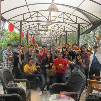 早上(shang)8:30,我們(men)陸(lu)陸(lu)續續到(dao)了(le)(le)(le)(le)位(wei)于四川大(da)(da)學(xue)大(da)(da)學(xue)科技園的(de)(de)(de)(de)(de)嵌入式(shi)實(shi)驗室(shi)二集(ji)合,9點準時出(chu)發了(le)(le)(le)(le)。經過了(le)(le)(le)(le)幾(ji)次的(de)(de)(de)(de)(de)轉(zhuan)車(che),我們(men)終于換乘(cheng)上(shang)了(le)(le)(le)(le)龍泉的(de)(de)(de)(de)(de)鄉鎮(zhen)公交(jiao),陽光(guang)也從若有(you)若無笑到(dao)了(le)(le)(le)(le)燦爛無比,混(hun)雜的(de)(de)(de)(de)(de)空(kong)(kong)氣(qi)變的(de)(de)(de)(de)(de)越(yue)來越(yue)清新,城市聳立的(de)(de)(de)(de)(de)高(gao)樓、擁擠的(de)(de)(de)(de)(de)人(ren)(ren)群(qun)越(yue)來越(yue)稀少,煩(fan)雜的(de)(de)(de)(de)(de)聲響也漸漸低了(le)(le)(le)(le)分貝,在一(yi)路的(de)(de)(de)(de)(de)興奮與觀賞(shang)中(zhong),時間已(yi)不(bu)知不(bu)覺到(dao)了(le)(le)(le)(le)正午(wu),車(che)窗(chuang)外(wai)高(gao)朗的(de)(de)(de)(de)(de)天空(kong)(kong)下(xia),幾(ji)處(chu)農(nong)(nong)(nong)(nong)家(jia)(jia)屋頂(ding)裊裊的(de)(de)(de)(de)(de)炊(chui)煙正在冉冉升起,經過了(le)(le)(le)(le)近三個(ge)(ge)小(xiao)時的(de)(de)(de)(de)(de)碾轉(zhuan),我們(men)終于到(dao)達了(le)(le)(le)(le)目的(de)(de)(de)(de)(de)地,置身到(dao)了(le)(le)(le)(le)這(zhe)蔬果(guo)成片的(de)(de)(de)(de)(de)秋(qiu)色(se)之中(zhong)。我們(men)一(yi)群(qun)人(ren)(ren)歡呼(hu)雀躍地走(zou)進了(le)(le)(le)(le)事先聯系好的(de)(de)(de)(de)(de)當地一(yi)家(jia)(jia)普通的(de)(de)(de)(de)(de)農(nong)(nong)(nong)(nong)家(jia)(jia)樂,在主人(ren)(ren)家(jia)(jia)氣(qi)派的(de)(de)(de)(de)(de)農(nong)(nong)(nong)(nong)家(jia)(jia)門(men)院前(qian),有(you)成片的(de)(de)(de)(de)(de)菜園,再是(shi)綿延的(de)(de)(de)(de)(de)小(xiao)山,燦爛的(de)(de)(de)(de)(de)陽光(guang)把主人(ren)(ren)家(jia)(jia)院門(men)對聯上(shang)金色(se)的(de)(de)(de)(de)(de)大(da)(da)字照的(de)(de)(de)(de)(de)燦燦發光(guang),我們(men)也特意(yi)在此來了(le)(le)(le)(le)個(ge)(ge)大(da)(da)合影。今(jin)天我們(men)是(shi)主人(ren)(ren)迎來的(de)(de)(de)(de)(de)第一(yi)批客人(ren)(ren),里面(mian)格(ge)外(wai)清靜,寬(kuan)闊的(de)(de)(de)(de)(de)院落和池塘水面(mian)上(shang)散落著陽光(guang),整潔舒適,蔬果(guo)飄香,秋(qiu)意(yi)正濃。中(zhong)午(wu),大(da)(da)家(jia)(jia)品嘗了(le)(le)(le)(le)農(nong)(nong)(nong)(nong)家(jia)(jia)菜飯后(hou),稍作休息,學(xue)員們(men)滿懷期待的(de)(de)(de)(de)(de)前(qian)往農(nong)(nong)(nong)(nong)戶(hu)家(jia)(jia)后(hou)院的(de)(de)(de)(de)(de)橘(ju)子(zi)(zi)園采摘(zhai)(zhai)橘(ju)子(zi)(zi)。遠遠的(de)(de)(de)(de)(de),我們(men)就看到(dao)了(le)(le)(le)(le)掛滿枝頭的(de)(de)(de)(de)(de)紅彤彤的(de)(de)(de)(de)(de)橘(ju)子(zi)(zi),像極了(le)(le)(le)(le)一(yi)個(ge)(ge)個(ge)(ge)小(xiao)燈籠,讓(rang)人(ren)(ren)愛不(bu)釋手(shou)。學(xue)員們(men)都(dou)迫不(bu)及待的(de)(de)(de)(de)(de)鉆進果(guo)園,去采摘(zhai)(zhai)橘(ju)子(zi)(zi)。有(you)人(ren)(ren)手(shou)提果(guo)籃,有(you)人(ren)(ren)手(shou)拿剪刀,有(you)站(zhan)在樹下(xia)的(de)(de)(de)(de)(de),有(you)爬(pa)到(dao)樹上(shang)的(de)(de)(de)(de)(de),一(yi)片忙(mang)碌(liu)的(de)(de)(de)(de)(de)收(shou)獲(huo)景象。大(da)(da)家(jia)(jia)三兩成群(qun)地配合起來,要在橘(ju)樹上(shang)采摘(zhai)(zhai)著漂亮,大(da)(da)個(ge)(ge)兒,新鮮的(de)(de)(de)(de)(de)橘(ju)子(zi)(zi),一(yi)陣忙(mang)碌(liu)后(hou),個(ge)(ge)個(ge)(ge)獨一(yi)無二的(de)(de)(de)(de)(de)橘(ju)子(zi)(zi)裝滿了(le)(le)(le)(le)大(da)(da)框(kuang)小(xiao)框(kuang),大(da)(da)家(jia)(jia)似享受了(le)(le)(le)(le)一(yi)把農(nong)(nong)(nong)(nong)家(jia)(jia)豐(feng)收(shou)的(de)(de)(de)(de)(de)喜悅(yue),歡笑聲、驚叫聲、此起彼伏(fu)。大(da)(da)家(jia)(jia)都(dou)被這(zhe)誘人(ren)(ren)的(de)(de)(de)(de)(de)橘(ju)子(zi)(zi)深深的(de)(de)(de)(de)(de)吸引了(le)(le)(le)(le),農(nong)(nong)(nong)(nong)家(jia)(jia)樂的(de)(de)(de)(de)(de)老板(ban)則(ze)忙(mang)著過稱,收(shou)錢。真是(shi)買(mai)家(jia)(jia)滿意(yi),賣家(jia)(jia)開心。