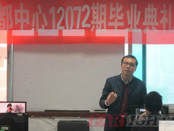 | 圖一、成都中心(xin)陶老師為畢業典(dian)禮致辭 | 圖二、成都(dou)中心羅老師對項目做點評(ping) |
