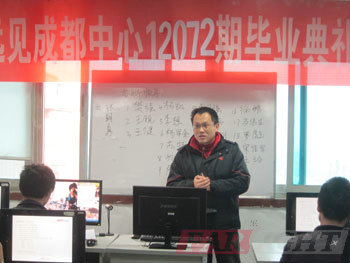 下午3點,畢業典禮正式開始。典禮首先(xian)由(you)成都中(zhong)心(xin)負責人(ren)陶(tao)老師致辭。首先(xian)陶(tao)老師對大家4個月學(xue)習所取(qu)得(de)的(de)成績表示肯定,同時他指出在學(xue)習、面試、工作中(zhong)心(xin)態的(de)重(zhong)要性,希望在座各(ge)位12072期的(de)學(xue)員能調整好心(xin)態,及(ji)時和(he)同學(xue)、老師做好溝通(tong),盡(jin)快找到滿意的(de)工作、開始人(ren)生新的(de)篇章。