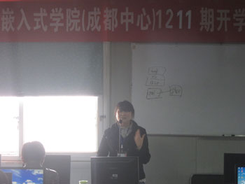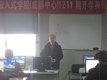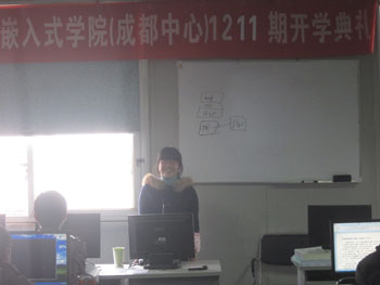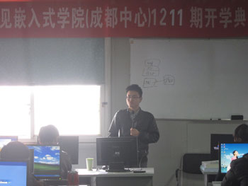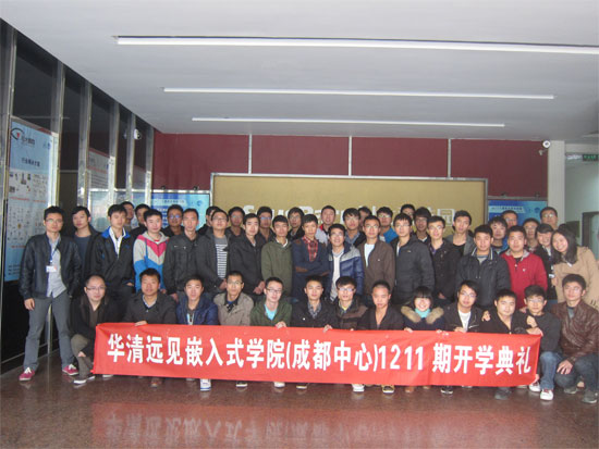 2012年11月19日,華清遠見教育科(ke)技集團(tuan)成都中心1211期學員開學典禮在嵌(qian)入式實驗室805隆重舉行。出席本次開學典禮的老師(shi)有成都中心校(xiao)長陶(tao)老師(shi),教學部的潘老師(shi)、朱老師(shi)、品質保障(zhang)部的黃(huang)老師(shi)、龔(gong)老師(shi)等(deng)。