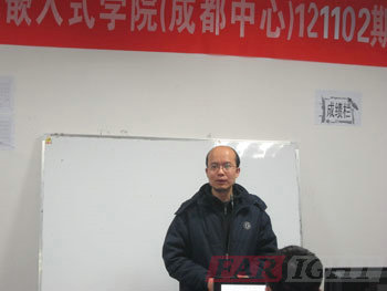 上午9時,典禮(li)正式(shi)開(kai)始(shi)。首(shou)先,由成(cheng)都中(zhong)心校長(chang)為本(ben)次典禮(li)致辭,陶(tao)老師(shi)結合(he)近(jin)期的(de)(de)(de)就(jiu)業形(xing)勢(shi),分(fen)析(xi)了嵌入式(shi)行(xing)業的(de)(de)(de)現(xian)狀、前景,介紹了成(cheng)都中(zhong)心的(de)(de)(de)相關(guan)情(qing)況、本(ben)期的(de)(de)(de)課程(cheng)安排(pai)、任課老師(shi)等(deng),并對學(xue)員們(men)提出了幾點希望(wang):要有(you)刻苦精神(shen),好的(de)(de)(de)心態,通過正確的(de)(de)(de)渠道反映問(wen)題(ti)等(deng),相信121102期的(de)(de)(de)各位學(xue)員們(men)通過自(zi)己(ji)的(de)(de)(de)努力,在老師(shi)們(men)的(de)(de)(de)幫助(zhu)下(xia),4個月后都能(neng)學(xue)有(you)所獲(huo),實現(xian)自(zi)己(ji)的(de)(de)(de)目標。