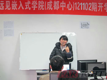 然后(hou),由就業(ye)(ye)(ye)專員黃老師介紹了就業(ye)(ye)(ye)的相關情況。黃老師介紹了在華清遠見畢業(ye)(ye)(ye)后(hou)學員一(yi)般能(neng)去(qu)的企業(ye)(ye)(ye),薪資范(fan)圍,以(yi)及現在企業(ye)(ye)(ye)的用人標(biao)準(zhun):職業(ye)(ye)(ye)素(su)養高(gao),專業(ye)(ye)(ye)技術好,學習適應力強,有團(tuan)隊合作(zuo)精神等等,希望各位(wei)學員能(neng)把(ba)這些(xie)標(biao)準(zhun)作(zuo)為自己的努(nu)力方向,以(yi)一(yi)個職業(ye)(ye)(ye)人的標(biao)準(zhun)嚴格要求自己,4個月后(hou)能(neng)成為一(yi)名(ming)優秀(xiu)的嵌入式工程師。