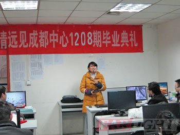 | 圖三、成都中心教(jiao)學部王老師總結 | 圖四、成都(dou)中心(xin)就業專員黃老師介(jie)紹就業安排 |