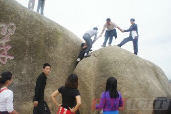 早(zao)上(shang)九點(dian)半(ban),大家準時到達了羊臺山入(ru)口,大伙們意趣盎然、躍躍欲(yu)試(shi)的(de)(de)(de)心情從一張張充滿興奮與喜悅的(de)(de)(de)臉(lian)龐上(shang)一覽無遺,邁開了向頂峰挺進的(de)(de)(de)第一步(bu)。
