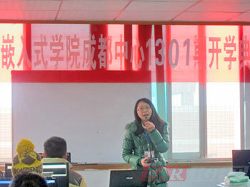 在嶄新(xin)的2013年,華(hua)清遠(yuan)見教(jiao)育科技集團成(cheng)都分(fen)中(zhong)心迎來(lai)了新(xin)年的第一批(pi)學(xue)(xue)員。1月14日上午,1301期開(kai)學(xue)(xue)典(dian)禮在成(cheng)都中(zhong)心所在的四川大(da)學(xue)(xue)大(da)學(xue)(xue)科技園(yuan)610教(jiao)室(shi)里(li)隆重舉(ju)行。成(cheng)都中(zhong)心校長陶老師(shi)(shi)(shi)(shi),學(xue)(xue)術(shu)經理潘老師(shi)(shi)(shi)(shi),教(jiao)學(xue)(xue)部馮老師(shi)(shi)(shi)(shi)及(ji)王老師(shi)(shi)(shi)(shi),就業專(zhuan)員黃老師(shi)(shi)(shi)(shi),班(ban)主任張(zhang)老師(shi)(shi)(shi)(shi)以及(ji)1301期全體學(xue)(xue)員出(chu)席了開(kai)學(xue)(xue)典(dian)禮。