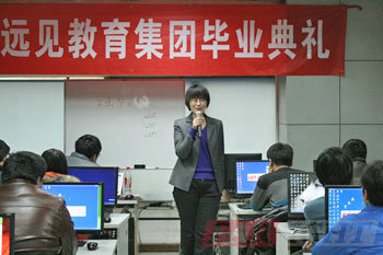 結業(ye)(ye)典禮首先(xian)由(you)華(hua)清遠(yuan)見(jian)品質(zhi)保(bao)障部總(zong)監關(guan)(guan)老師致辭,關(guan)(guan)老師首先(xian)對(dui)(dui)12091期學(xue)員(yuan)為期四個月的(de)(de)(de)學(xue)習(xi)做出肯定(ding),并(bing)總(zong)結和(he)(he)回顧了學(xue)員(yuan)們(men)四個月的(de)(de)(de)學(xue)習(xi)過(guo)程及取得的(de)(de)(de)學(xue)習(xi)成果,同時關(guan)(guan)老師還鼓(gu)勵學(xue)員(yuan)們(men)對(dui)(dui)自(zi)己要(yao)(yao)(yao)充滿信心,要(yao)(yao)(yao)不斷的(de)(de)(de)學(xue)習(xi),對(dui)(dui)行業(ye)(ye)發(fa)展(zhan)要(yao)(yao)(yao)充滿信心,并(bing)歡迎各位同學(xue)在工(gong)(gong)作(zuo)后(hou)(hou)繼續與(yu)學(xue)院保(bao)持聯系,把(ba)華(hua)清遠(yuan)見(jian)教育科技集(ji)團作(zuo)為未來(lai)職(zhi)業(ye)(ye)發(fa)展(zhan)的(de)(de)(de)充電大本營和(he)(he)基地(di)。后(hou)(hou)關(guan)(guan)老師對(dui)(dui)后(hou)(hou)續的(de)(de)(de)就(jiu)(jiu)業(ye)(ye)工(gong)(gong)作(zuo)做出規(gui)劃,同時建議學(xue)員(yuan)們(men)要(yao)(yao)(yao)調(diao)整好(hao)心態,注意(yi)不斷提升自(zi)己的(de)(de)(de)職(zhi)業(ye)(ye)素質(zhi)和(he)(he)職(zhi)業(ye)(ye)技能,準備以(yi)好(hao)的(de)(de)(de)狀態配合就(jiu)(jiu)業(ye)(ye)部的(de)(de)(de)工(gong)(gong)作(zuo)推薦。后(hou)(hou),鼓(gu)勵學(xue)員(yuan)要(yao)(yao)(yao)有信心,爭取找(zhao)到一份滿意(yi)的(de)(de)(de)工(gong)(gong)作(zuo)。