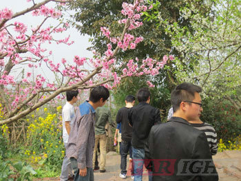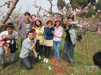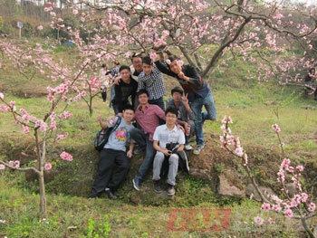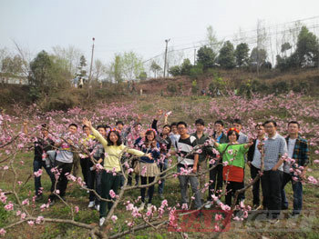 中午11點(dian)左右,成(cheng)都中心全體師(shi)生到(dao)達桃(tao)花(hua)故里(li)景區,在(zai)標(biao)志性路(lu)標(biao)前(qian)合影留念后,大(da)(da)家迫不及(ji)待的去(qu)尋找桃(tao)花(hua)的蹤跡。步行(xing)了大(da)(da)概(gai)兩(liang)百米,大(da)(da)家發現了一(yi)片(pian)桃(tao)花(hua)林,看著(zhu)桃(tao)林中合影的游(you)客,學員(yuan)們也爭先(xian)拿出相機(ji),留下眼前(qian)這美好的景象。有(you)單人照,有(you)組合照,更有(you)集體合影,姿態萬(wan)千,一(yi)群(qun)陽光少年,在(zai)美麗的花(hua)叢中穿梭嬉戲,美麗的景色讓人流連(lian)忘返。