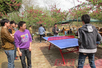 在(zai)(zai)輕松的(de)(de)(de)(de)(de)氛圍中(zhong),時(shi)間(jian)(jian)慢慢的(de)(de)(de)(de)(de)溜(liu)走。很快到(dao)了(le)午飯(fan)時(shi)間(jian)(jian),大(da)家驅(qu)車來到(dao)幸福梅林的(de)(de)(de)(de)(de)一農家小院(yuan),院(yuan)子(zi)里(li)載滿了(le)桃花,各居枝頭,爭奇斗艷。飯(fan)前(qian),學員(yuan)們有(you)(you)(you)的(de)(de)(de)(de)(de)坐在(zai)(zai)桃花叢(cong)中(zhong)懶洋(yang)洋(yang)的(de)(de)(de)(de)(de)曬著太陽,有(you)(you)(you)的(de)(de)(de)(de)(de)品著小茶(cha),有(you)(you)(you)的(de)(de)(de)(de)(de)蕩著秋千,有(you)(you)(you)的(de)(de)(de)(de)(de)打起了(le)乒(ping)乓球,好(hao)不(bu)愜意。飯(fan)點一到(dao),大(da)家迅速坐好(hao),等著開飯(fan)。真(zhen)是心情好(hao),胃(wei)口(kou)就好(hao),一大(da)桌的(de)(de)(de)(de)(de)農家美食,漸(jian)漸(jian)見底。吃飽(bao)喝(he)足,到(dao)小院(yuan)兒里(li)散散步,以助(zhu)消化。