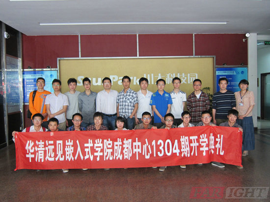 2013年(nian)4月27日,成都中(zhong)心所在(zai)的(de)(de)(de)四川大學(xue)(xue)(xue)大學(xue)(xue)(xue)科技(ji)園的(de)(de)(de)嵌入式實驗室(shi)一(yi)里迎來了1304期的(de)(de)(de)學(xue)(xue)(xue)員們(men),成都中(zhong)心學(xue)(xue)(xue)術經(jing)理潘(pan)老(lao)師(shi)(shi),教學(xue)(xue)(xue)部馮(feng)老(lao)師(shi)(shi),就業(ye)專員龔(gong)老(lao)師(shi)(shi),行政助理鄭老(lao)師(shi)(shi)出席了本次開學(xue)(xue)(xue)典(dian)禮。在(zai)這(zhe)個(ge)特別的(de)(de)(de)日子,我們(men)對雅(ya)安地震中(zhong)失(shi)去生命的(de)(de)(de)親友表(biao)示悼念的(de)(de)(de)同時將以嶄新的(de)(de)(de)面貌迎接未來,也更加珍惜在(zai)華清(qing)遠見學(xue)(xue)(xue)習(xi)充電的(de)(de)(de)機會。