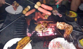 18點30分,我(wo)(wo)們(men)(men)(men)(men)(men)停下(xia)來開(kai)(kai)(kai)始(shi)扎(zha)帳(zhang)篷,剛開(kai)(kai)(kai)始(shi)我(wo)(wo)們(men)(men)(men)(men)(men)無從下(xia)手,因(yin)為很(hen)多(duo)同學(xue)都(dou)沒有(you)經驗,鬧了(le)(le)(le)很(hen)多(duo)笑話,多(duo)了(le)(le)(le)很(hen)多(duo)工序(xu),后來讓(rang)姚老師發現了(le)(le)(le),在她與導游的(de)幫助下(xia),我(wo)(wo)們(men)(men)(men)(men)(men)終于(yu)把帳(zhang)篷扎(zha)好(hao)(hao)了(le)(le)(le),解(jie)(jie)決(jue)了(le)(le)(le)今晚的(de)住宿(su)問題,我(wo)(wo)們(men)(men)(men)(men)(men)真想躺下(xia)來睡一覺(jue)。但(dan)是,在與海水(shui)作(zuo)(zuo)戰兩個多(duo)小時(shi)、扎(zha)了(le)(le)(le)半小時(shi)帳(zhang)篷后,一停下(xia)來大(da)家就都(dou)感(gan)覺(jue)到饑腸(chang)轆轆了(le)(le)(le),所以我(wo)(wo)們(men)(men)(men)(men)(men)要(yao)先解(jie)(jie)決(jue)吃(chi)的(de)問題。于(yu)是我(wo)(wo)們(men)(men)(men)(men)(men)迫不(bu)及待(dai)地開(kai)(kai)(kai)始(shi)了(le)(le)(le)今天的(de)晚餐。燒(shao)烤(kao)?對,沒錯(cuo),燒(shao)烤(kao)就是我(wo)(wo)們(men)(men)(men)(men)(men)的(de)晚餐。食材已經提前準備好(hao)(hao)了(le)(le)(le),大(da)家剛開(kai)(kai)(kai)始(shi)七手八腳的(de)用燒(shao)烤(kao)叉串(chuan)好(hao)(hao)想吃(chi)的(de)東(dong)西(xi)(xi),放在燒(shao)烤(kao)架上(shang),開(kai)(kai)(kai)動了(le)(le)(le),但(dan)結(jie)果我(wo)(wo)們(men)(men)(men)(men)(men)悲(bei)哀的(de)發現,這(zhe)樣(yang)小的(de)爐子,這(zhe)么亂地操作(zuo)(zuo)是吃(chi)不(bu)到東(dong)西(xi)(xi)的(de)。于(yu)是,我(wo)(wo)們(men)(men)(men)(men)(men)開(kai)(kai)(kai)始(shi)分工合作(zuo)(zuo),你撒鹽,我(wo)(wo)刷油,他負(fu)(fu)責烤(kao)雞(ji)腿,他負(fu)(fu)責烤(kao)肉丸……很(hen)快我(wo)(wo)們(men)(men)(men)(men)(men)就開(kai)(kai)(kai)始(shi)有(you)美(mei)美(mei)的(de)東(dong)西(xi)(xi)吃(chi)了(le)(le)(le),忙碌并歡快著。看,我(wo)(wo)們(men)(men)(men)(men)(men)吃(chi)得多(duo)起勁,引來了(le)(le)(le)旁邊眾多(duo)游客羨慕的(de)目光。