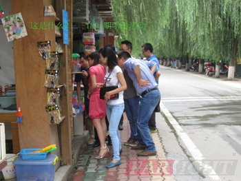 | 圖一、成都1304期學員活動合影 | 圖二、花鳥魚蟲小店門口圍觀 |