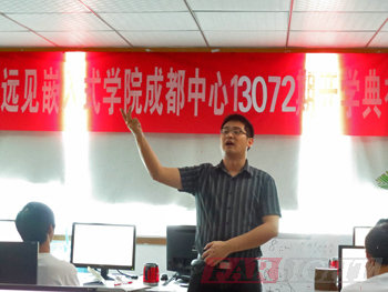2013年(nian)7月29日,華(hua)清遠(yuan)見成都(dou)中(zhong)心(xin)13072期開學(xue)典(dian)禮(li)在四川大(da)學(xue)大(da)學(xue)科技(ji)園實(shi)驗室610舉行(xing),出席(xi)本(ben)次開學(xue)典(dian)禮(li)的有成都(dou)中(zhong)心(xin)校長陶老(lao)(lao)(lao)師(shi)(shi),學(xue)術(shu)經理潘老(lao)(lao)(lao)師(shi)(shi),教學(xue)部朱老(lao)(lao)(lao)師(shi)(shi),就(jiu)業專員龔老(lao)(lao)(lao)師(shi)(shi),行(xing)政助理鄭老(lao)(lao)(lao)師(shi)(shi)等,本(ben)次典(dian)禮(li)由班主(zhu)任張老(lao)(lao)(lao)師(shi)(shi)主(zhu)持。