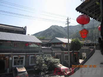 | 圖一、活動目的地:秦嶺豐裕口上王村農家樂 | 圖二、安靜悠閑的山間小村,晴空萬里 |