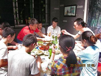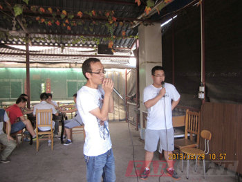 十幾分(fen)鐘后(hou)大(da)家(jia)(jia)到達了農家(jia)(jia)樂(le)稍作(zuo)休息后(hou),大(da)家(jia)(jia)開(kai)(kai)始(shi)了自(zi)由(you)活動(dong),農家(jia)(jia)露天KTV吸引(yin)了不(bu)少學(xue)員(yuan)(yuan),休閑(xian)棋牌(pai)麻將(jiang)也(ye)自(zi)行組隊展開(kai)(kai)活動(dong)。農家(jia)(jia)KTV開(kai)(kai)始(shi)時,大(da)家(jia)(jia)還(huan)比較害羞,在一(yi)曲(qu)《炫民族風(feng)》的熱場后(hou),大(da)家(jia)(jia)紛紛開(kai)(kai)始(shi)一(yi)展歌喉。利用(yong)點唱機的評分(fen)系統,個人賽(sai),組合賽(sai)紛紛出爐。平(ping)時大(da)家(jia)(jia)都是交流技術,嚴謹(jin)敲(qiao)代碼(ma)。可拿起(qi)話筒,大(da)家(jia)(jia)開(kai)(kai)始(shi)了各(ge)種(zhong)曲(qu)風(feng)的角逐。一(yi)曲(qu)《藍蓮花》的大(da)合唱引(yin)得正在棋牌(pai)麻將(jiang)的學(xue)員(yuan)(yuan)紛紛過(guo)來加(jia)入。再看棋牌(pai)麻將(jiang)的組員(yuan)(yuan)們,因為(wei)不(bu)懂規(gui)則紛紛開(kai)(kai)始(shi)可愛玩法,互相玩笑和逗(dou)樂(le)。